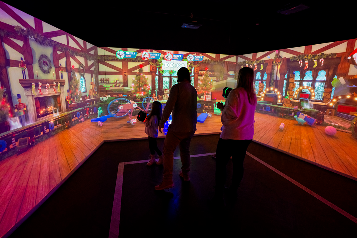 En la sala “Expreso de los Regalos” (Gift Express), los proyectores Christie Captiva transforman tres paredes en un escenario dinámico donde los niños ayudan a atrapar y envolver regalos. En “Estudio de las Estrellas” (Twinkle Studio), los proyectores muestran las creaciones de los niños —regalos y adornos que ellos mismos decoran— como proyecciones interactivas en un salón acogedor que reacciona al tacto. La experiencia también incorpora una batalla de bolas de nieve con Jack Frost, un paseo en trineo con Papá Noel y termina con un breve segmento de realidad virtual.